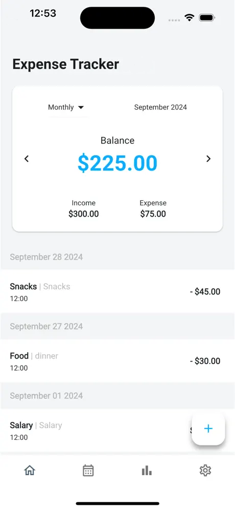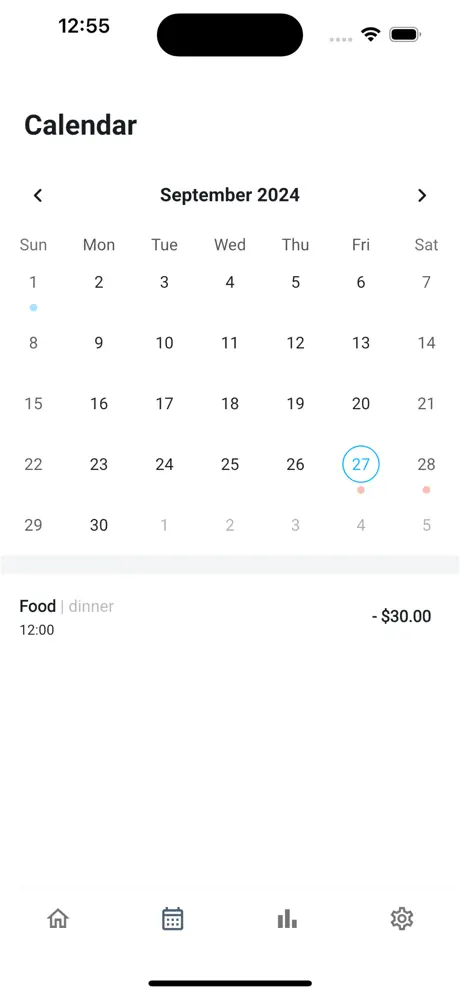 An intuitive expense tracker that helps you log transactions, categorize your spending, and analyze your financial habits with a calendar view and detailed monthly insights.